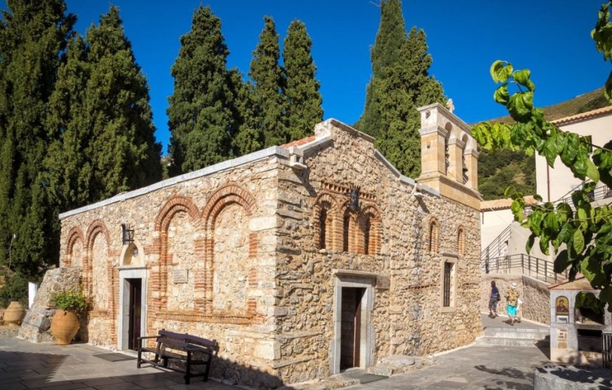 After our visit to Knossos, our first stop on the scenic route towards central Crete is the Monastery of “Kera Kardiotissa”. It is dedicated to Virgin Mary; it is run by nuns and is locally known as Little Lourdes, with people making pilgrimages to pray for relief from their sins.